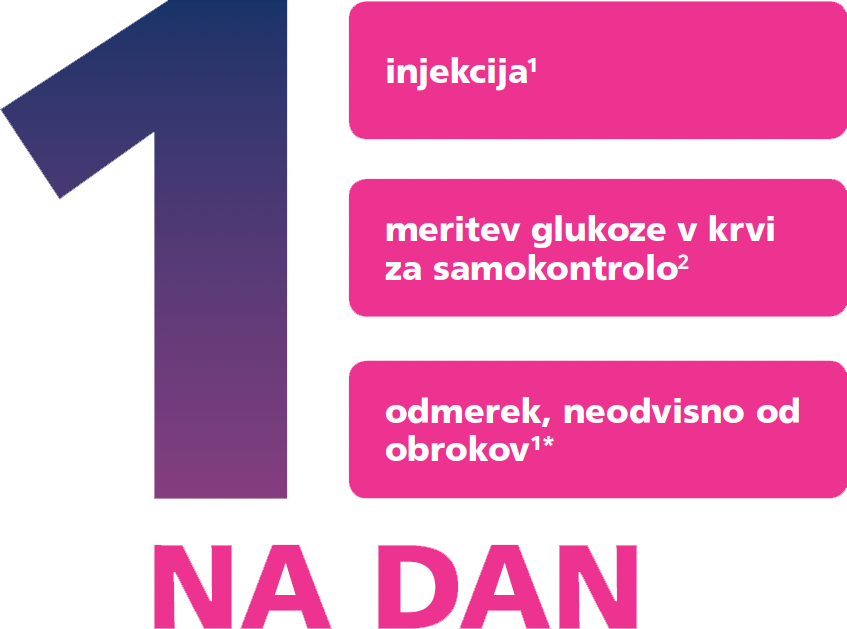 Ime zdravila: Xultophy 100 enot/ml + 3,6 mg/ml raztopina za injiciranje Sestava: insulin degludek in liraglutid. En ml raztopine vsebuje 100 enot insulina degludek in 3,6 mg liraglutida. En napolnjen injekcijski peresnik vsebuje 300 enot insulina degludek in 10,8 mg liraglutida v 3 ml raztopine. En odmerni korak vsebuje 1 enoto insulina degludek in 0,036 mg liraglutida. Indikacije: zdravljenje odraslih z neustrezno nadzorovano sladkorno boleznijo tipa 2, kot dodatek k dieti in telesni vadbi in kot dodatek k drugim peroralnim zdravilom za zdravljenje sladkorne bolezni. Za rezultate študij v zvezi s kombinacijami, učinki na urejenost glikemije in skupinami bolnikov, ki so jih preučili, glejte poglavja 4.4., 4.5 in 5.1 v celotnem povzetku glavnih značilnosti zdravila. Odmerjanje in način uporabe: zdravilo Xultophy se uporablja enkrat na dan v obliki subkutane injekcije. Zdravilo Xultophy je treba odmerjati glede na potrebe posameznega bolnika. Pri bolnikih z večjo telesno dejavnostjo, spremembo običajne prehrane ali med sočasnimi boleznimi bo odmerek morda treba prilagoditi. Bolniki, ki pozabijo odmerek, naj si zdravilo injicirajo, ko to ugotovijo, in potem nadaljujejo s predpisanim odmerjanjem enkrat na dan. Zagotoviti je treba, da med posameznima injiciranjima vedno mine najmanj 8 ur. Največji dnevni odmerek zdravila Xultophy je 50 odmernih korakov (50 enot insulina degludek in 1,8 mg liraglutida). Zdravilo Xultophy se lahko uporablja kot dodatek k že obstoječemu zdravljenju s peroralnimi antidiabetiki. Pred uvedbo zdravljenja z zdravilom Xultophy je treba zdravljenje z agonistom receptorjev GLP-1 ukiniti. Če bolnik prehaja z zdravljenja z dolgodelujočim agonistom receptorjev GLP-1 (npr. z odmerjanjem enkrat tedensko), je podaljšano delovanje zdravila treba upoštevati. Pred uvedbo zdravljenja z zdravilom Xultophy je treba zdravljenje z drugimi insulinskimi shemami ukiniti. Priporočeni začetni odmerek zdravila Xultophy pri prehodu s katere koli sheme zdravljenja z insulinom, ki vključuje bazalni insulin, je 16 odmernih korakov. Priporočenega začetnega odmerka se ne sme prekoračiti, v določenih primerih bo odmerek morda treba zmanjšati, da ne pride do hipoglikemije. Ob prehodu z zdravljenja z agonistom receptorjev GLP-1 ali s katere koli sheme zdravljenja z insulinom, ki vključuje bazalni insulin, ter nekaj tednov po njem je priporočljivo skrbno spremljanje koncentracije glukoze v krvi. Zdravilo Xultophy se lahko uporablja pri starejših bolnikih. Zdravilo Xultophy se lahko uporablja pri bolnikih z blago, zmerno ali hudo okvaro ledvic. Zdravila Xultophy ni mogoče priporočiti za zdravljenje bolnikov s končno odpovedjo ledvic. Zdravilo Xultophy se lahko uporablja pri bolnikih z blago do zmerno okvaro jeter, uporaba pa ni priporočljiva pri bolnikih s hudo okvaro jeter. Koncentracijo glukoze v krvi starejših bolnikov in bolnikov z blago ali zmerno okvaro ledvic ter blago ali zmerno okvaro jeter je treba spremljati pozorneje ter odmerek prilagoditi potrebam posameznega bolnika. Uporaba zdravila Xultophy pri pediatrični populaciji ni smiselna. Zdravilo Xultophy je namenjeno zgolj subkutani uporabi. Zdravila Xultophy se ne sme aplicirati intravensko ali intramuskularno. Zdravilo Xultophy se injicira subkutano v stegno, nadlaket ali trebušno steno. Znotraj istega predela je treba mesta injiciranja vedno menjavati, da se zmanjša tveganje za lipodistrofijo in kožno amiloidozo. Bolnikom je treba naročiti, da morajo vsakič uporabiti novo injekcijsko iglo. Večkratna uporaba injekcijskih igel za injekcijske peresnike poveča tveganje, da se injekcijska igla zamaši, kar ima lahko za posledico premajhen ali prevelik odmerek zdravila. Če se injekcijska igla zamaši, morajo bolniki upoštevati napotke, ki so opisani v navodilu za uporabo injekcijskega peresnika. Kontraindikacije: preobčutljivost na katero od obeh učinkovin ali katero koli pomožno snov. Posebna opozorila in previdnostni ukrepi: zdravila Xultophy se ne sme uporabljati pri bolnikih s sladkorno boleznijo tipa 1 ali za zdravljenje diabetične ketoacidoze. Hipoglikemija se lahko pojavi, če je odmerek zdravila Xultophy večji od potrebnega. Izpustitev obroka ali nenačrtovana, naporna telesna dejavnost lahko povzročita hipoglikemijo. Če se zdravilo uporablja v kombinaciji s sulfonilsečnino, se tveganje za pojav hipoglikemije lahko zmanjša z zmanjšanjem odmerka sulfonilsečnine. Sočasne bolezni ledvic, jeter ali bolezni, ki vplivajo na nadledvično žlezo, hipofizo ali ščitnico, lahko zahtevajo spremembo odmerka zdravila Xultophy. Bolnikom, pri katerih se urejenost glikemije zelo izboljša (npr. z intenziviranim zdravljenjem), se običajni opozorilni simptomi hipoglikemije lahko spremenijo in jih je s to možnostjo treba seznaniti. Pri bolnikih z dolgotrajno sladkorno boleznijo lahko običajni opozorilni simptomi hipoglikemije izginejo. Podaljšani učinek zdravila Xultophy lahko upočasni okrevanje po hipoglikemiji. Neustrezno odmerjanje in/ali prekinitev zdravljenja povzroči hiperglikemijo in morebiti tudi hiperosmolarno komo. V primeru prenehanja uporabe zdravila Xultophy je treba zagotoviti, da se bolniku uvede druga zdravila za zdravljenje sladkorne bolezni. Spremljajoče bolezni, posebno okužbe, lahko povzročijo hiperglikemijo in zvečajo bolnikovo potrebo po zdravljenju sladkorne bolezni. V primeru hude hiperglikemije je treba razmisliti o aplikaciji hitrodelujočega insulina. Nezdravljene hiperglikemije vodijo v hiperosmolarno komo oz. diabetično ketoacidozo, ki sta lahko smrtni. Bolnike je treba poučiti, naj nenehno menjavajo mesto injiciranja, da se zmanjša tveganje za pojav lipodistrofije in kožne amiloidoze. Po injiciranju insulina na mesta, kjer se pojavijo ti učinki, obstaja potencialno tveganje za zapoznelo absorpcijo insulina in poslabšan glikemični nadzor. Poročali so, da nenadna sprememba mesta injiciranja na neprizadeto območje privede do hipoglikemije. Po menjavi mest